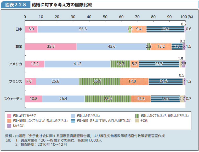も、スウェーデンに迫る25.6%と、結婚というカタチにはこだわっていない様子がわかります。